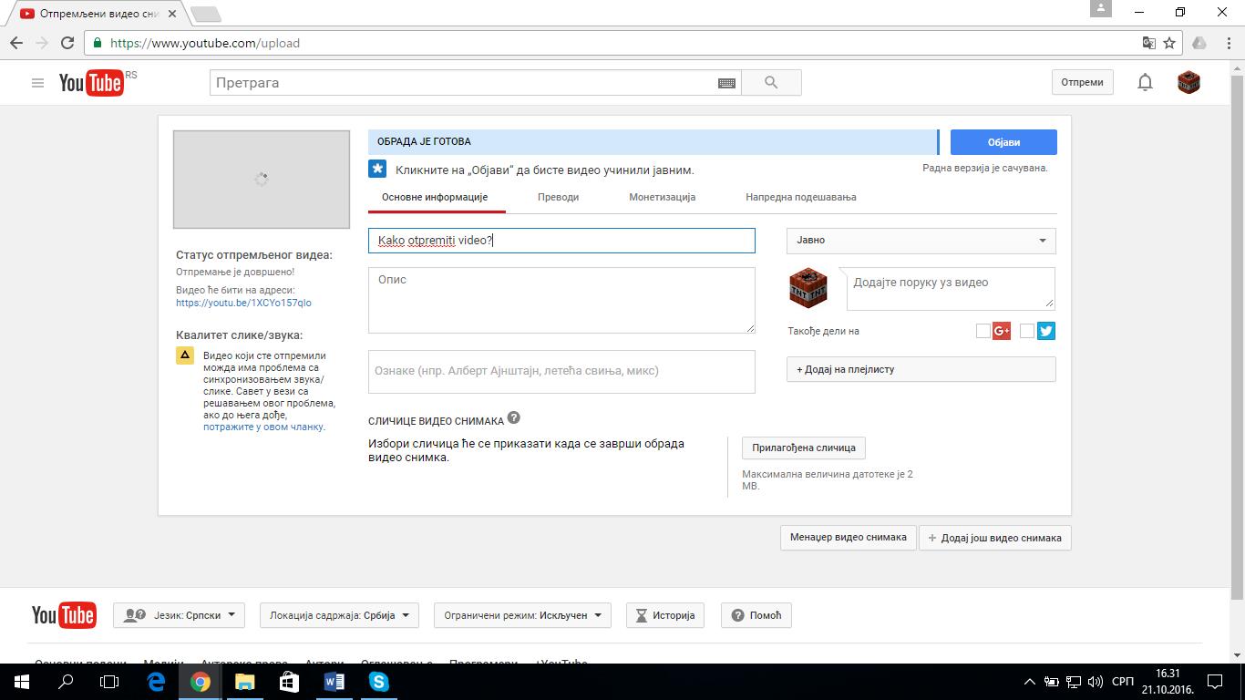 То је то, ваш видео материјал је отпремљњн/постављен на“YouTube“.