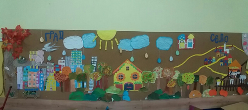 воју слогу су показали и у заједничком тематском раду Село и град. Стрпљиво и са највећом пажњом урадили су овај пано трудећи се да покажу своје знање и умеће. Мноштво детаља сведочи о њиховој посвећености и доброј мотивисаности за рад.