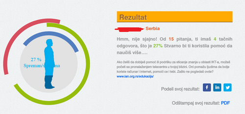 У завршном делу часа дискутовали смо о нивоу постигнућа. Ученици су се суочили са неочекивано слабим резултатима и разумели да дигитална писменост подразумева нешто друго у односу на играње видео-игара или сурфовање по Интернету.